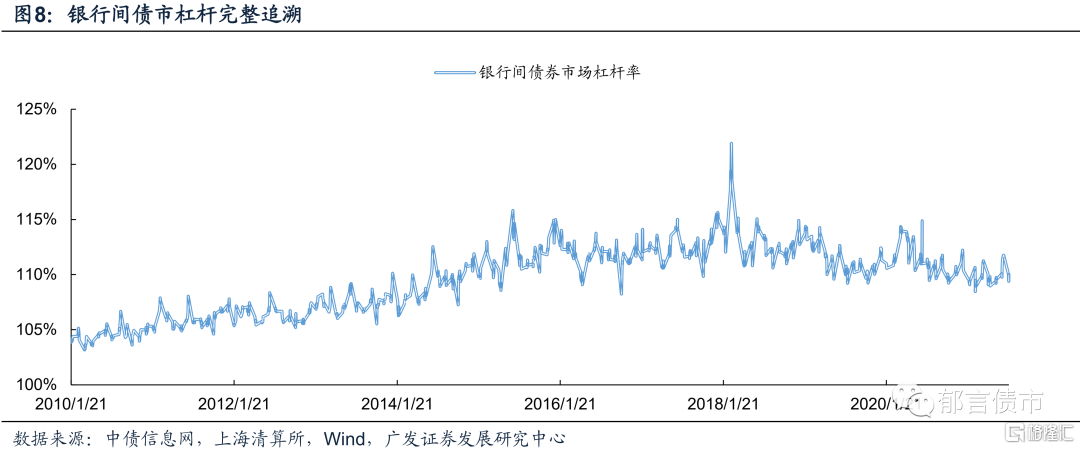 将我们测算的债券托管总额与待购回质押式回购余额,代入银行间债市杠杆率计算公式,可得2010年以来银行间债市杠杆率。