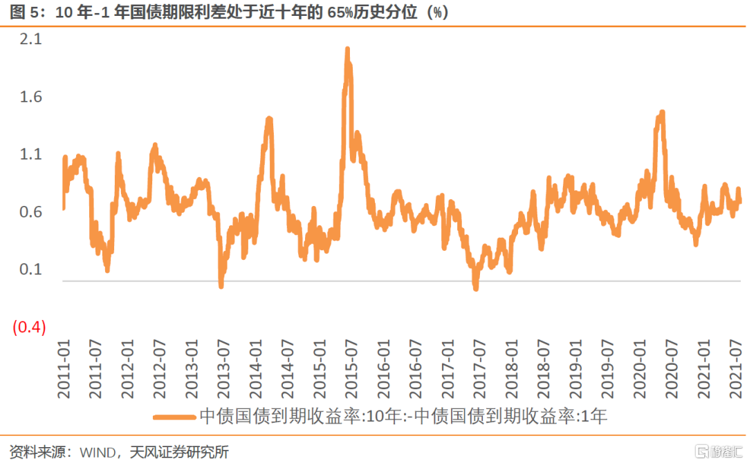 中美利差处于近十年的70%历史分位,期限利差处于65%历史分位,美债利率短期继续回落,中国经济和通胀温和回落,中美利差和期限利差仍然有压缩空间。