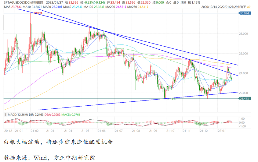 2022年一季度特别是3月份,若美联储再度释放更加鹰派信号,贵金属仍有再度走弱的短期可能,1758美元/盎司(365元/克)是重要支撑位,1720-1740美元/盎司(360元/克)区间为核心支撑位,跌破此区间可能性小。白银短期再度走弱可能存在,21.4前低位置(4600元/千克)为强支撑位,跌至22美元/盎司(4600)下方建议企稳做多。贵金属因政策调整预期和恐慌回落则是买入时机,建议继续逢低做多为主。