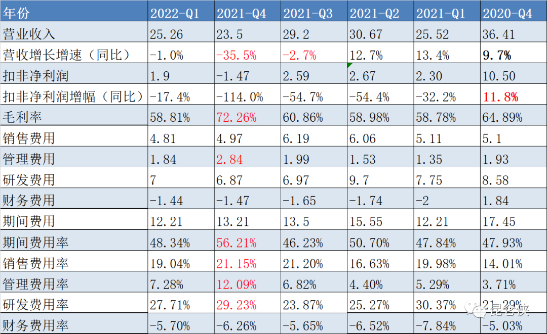 2021年上半年营收9.12亿,平均每季度4.55亿,2022Q1同比增长22%,增长大幅放缓,和预期的50%+的增长相差较大。