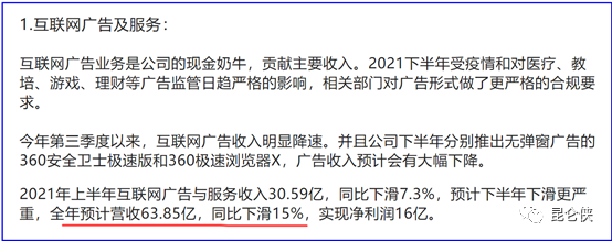 2.2021下半年,监管部门要求游戏厂商对未成年人沉迷游戏问题进行持续改进,暂停游戏版号发行,对游戏行业的冲击也很大。360的游戏业务也在所难免。