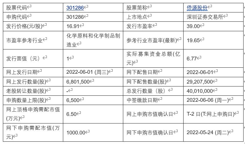 5月31日,侨源股份发布首次公开发行股票并在创业板上市发行公告。公告称,《招股意向书》中披露的募集资金需求金额为100,000.00万元,本次发行价格16.91元/股对应融资规模为67,656.91万元,低于前述募集资金需求金额。