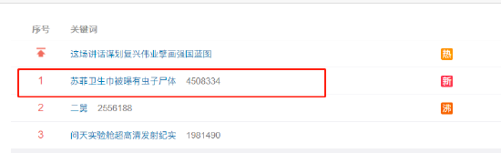 NO.5 热搜第一!苏菲卫生巾被曝有虫子尸体 质量没保障?