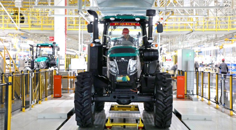 在大马力拖拉机“智慧工厂”,智能化装备与MES系统默契配合生产效率达到了全新高度,产能较平日提升50%以上,履带机工厂通过产线优化与科学排产产能较平日提升30%以上,各生产单元以最大负荷运转确保急需农机快速交付。