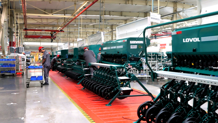 聚焦泥泞工况与三秋作业需求,四行、五行履带式玉米机,四驱玉米机型、大马力拖拉机,播种机、烘干机等成为生产主线,履带机玉米割台等重点部件加紧生产,为“三秋”一线输送最应时的农机装备。
